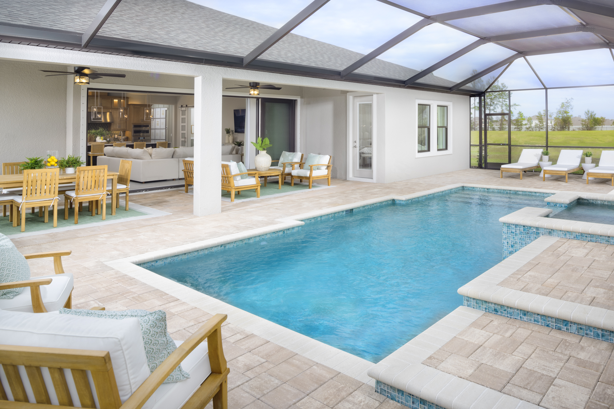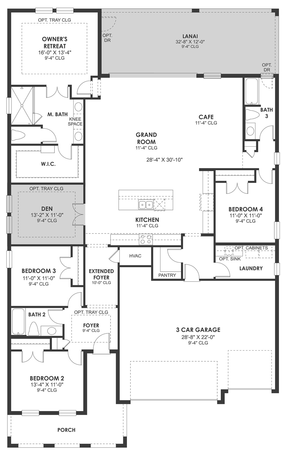 Well appointed living and leisure spaces for versatility. Extended foyer leads to spacious grand room, island kitchen and café area that flows effortlessly to the lanai. Owner's retreat features large walk-in shower.