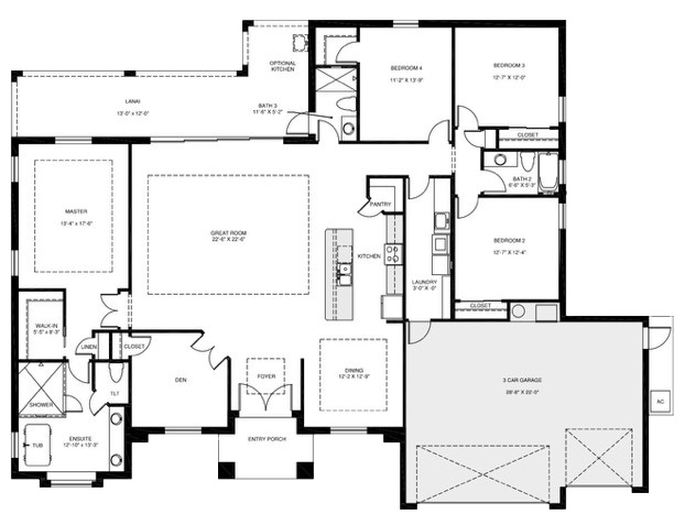 The Jubilee is a single level floor plan featuring open concept living, luxury kitchen, covered lanai, private owner's suite, and three car garage - ideal for any family.